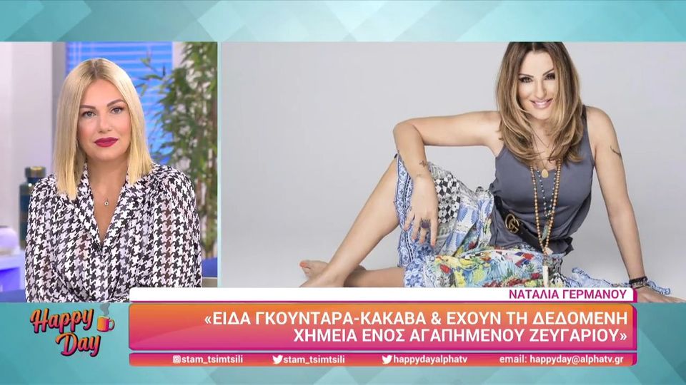 Η παρουσιάστρια του Alpha αποκάλυψε πριν μια βδομάδα ακριβώς μέσα από την εκπομπή του Τάκη Χατζή Direct πως υπάρχει ένας νέος άντρας στη ζωή της μόνο δύο χρόνια μικρότερός της. Η Ελεωνόρα Μελέτη φιλοξένησε στο πλατώ της εκπομπή της Μετά τα Μεσάνυχτα την Ναταλία Γερμανού AlphaTV. Η Ναταλία Γερμανού είναι ξανά ερωτευμένη.