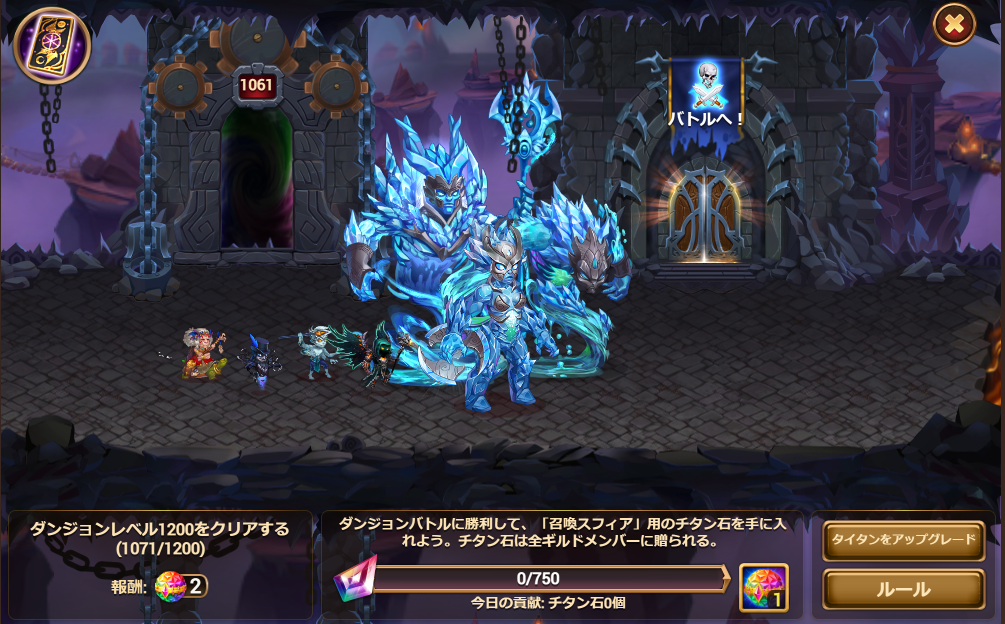 ダンジョンのコツと言うか定石はタイタンが全滅する前に見切りをつけてやめる事です 2倍のポイントを効率良く取得します デイリークエストがあるので150ポイントを毎日取得する事が理想です オートは使わずマニュアルで戦います. Hero Warsヒーローウォーズギルド関連タイタン概要 ギルドとタイタンシステム全般についての記事ですギルドに加入すると開放されるタイタンシステムはヒーロー戦と同じくタイタンを育成強化して行います. タイタンの育成は以下の6種類です タイタン育成のポイント - HeroWarsヒーローウォーズ 育成攻略 ポーション又はエメラルドで上げるレベル エレメントのエッセンス又はエメラルドで上げるアーティファクトの1番2番 ゴールド又はエメラルドで上げる.