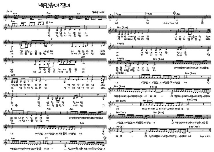 심수봉 백만송이 장미 Am Key 쉬운 기타 코드 악보